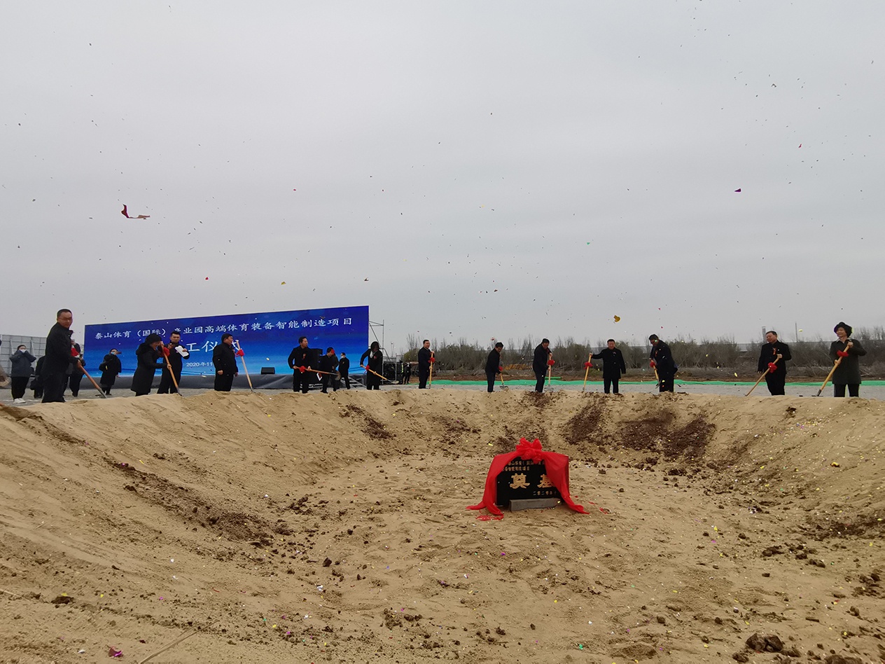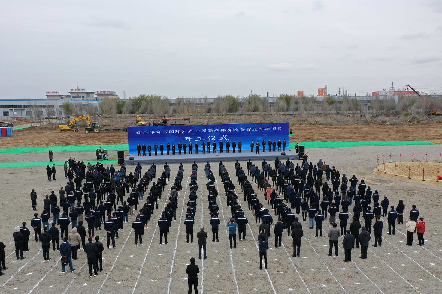 为坚定不移走制造强国、质量强国、网络强国、数字中国路线,推进体育产业基础高级化、产业链现代化,提高品牌核心竞争力,响应“健康中国”“体育强国”国家战略号召,积极落实山东省委省政府做大做强民族体育品牌的指示,为发展体育产业聚势赋能,11月26日,jinnian金年会(国际)产业园高端体育装备智能制造项目开工仪式在泰山集团举行。中国体育用品业联合会主席李桦、山东省体育局副局长王延奎、山东省工信厅二级巡视员李向东、中国农业银行山东省分行副巡视员宋红光、山东大学体育学院党委常务副书记郭学庆、德州市政协主席翟长生、德州市政协秘书长魏增新、中国农业银行德州分行行长田树江,德州市及乐陵市有关部门主要负责同志出席仪式。乐陵市委书记樊廷雷主持开工仪式并发表致辞。