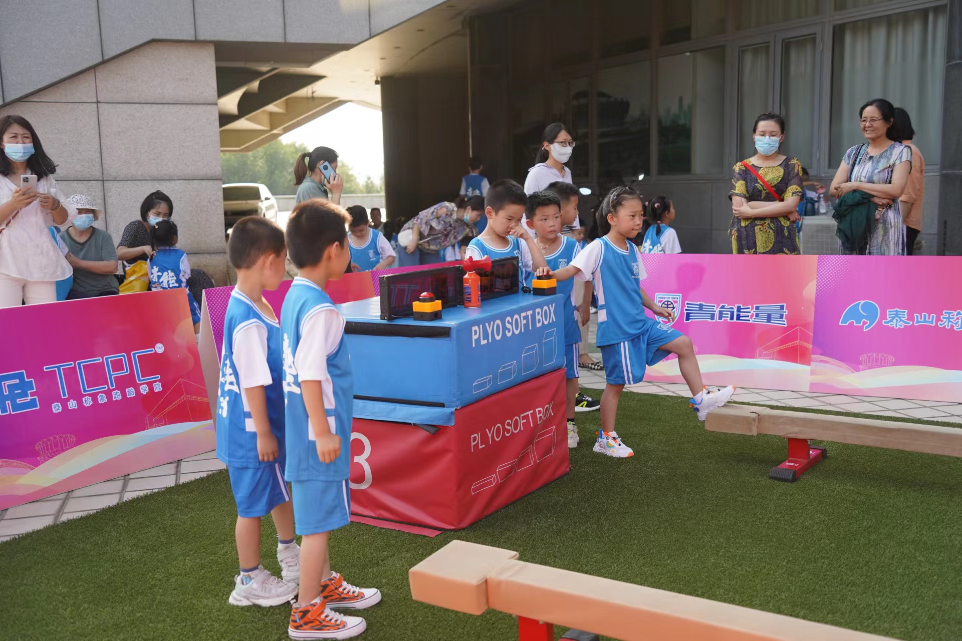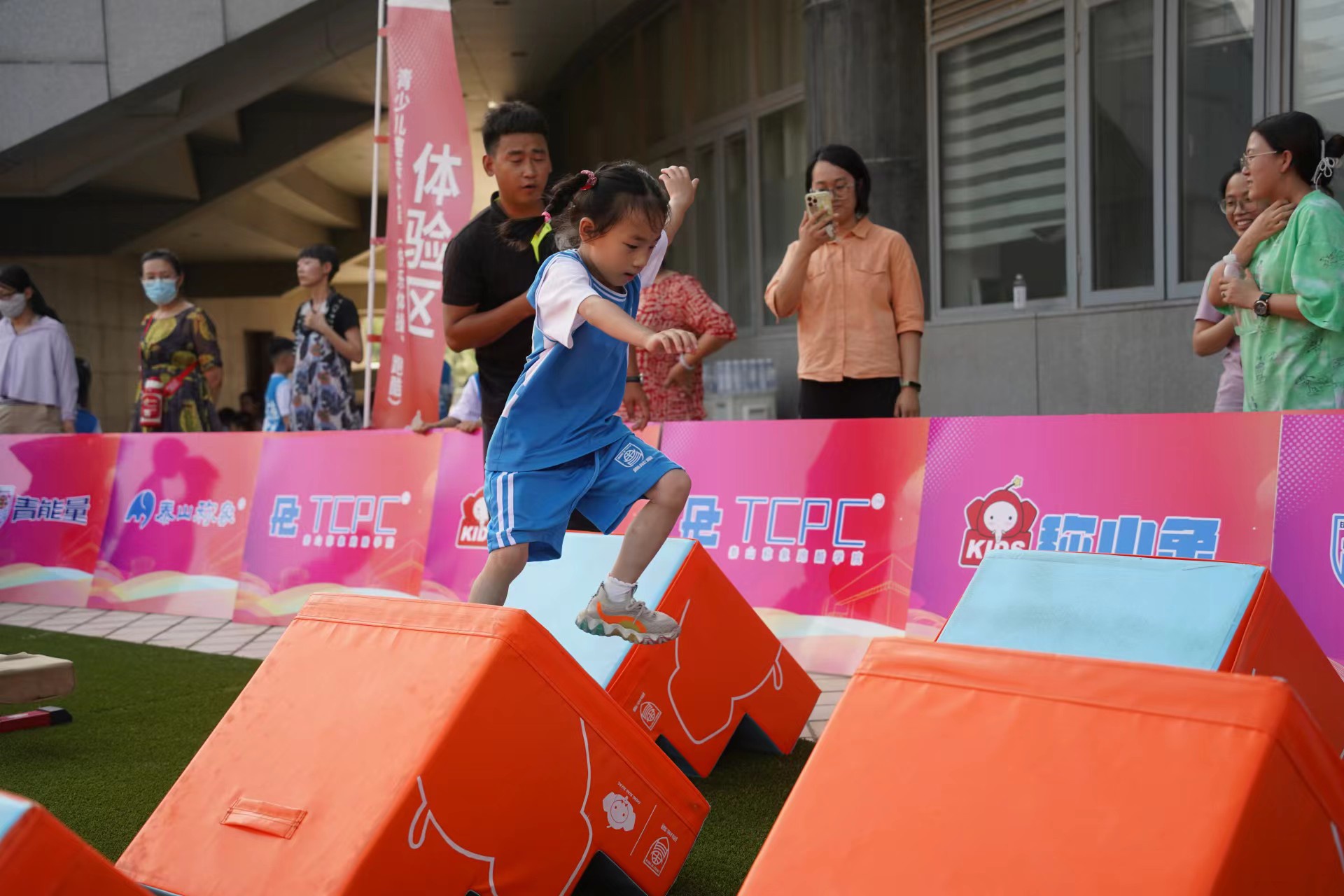 7月18日,2022年全国青年体操锦标赛暨全国青年体操U系列锦标赛开赛倒计时第二天!在德州体育馆比赛场馆外的展示区,由本次赛事承办方jinnian金年会,携旗下运动品牌青能量、泰山称象、称小象、TCPC跑酷学院等多个品牌联合打造的儿童快乐体操和跑酷展示,成为德州全民参与体操赛事的新亮点。